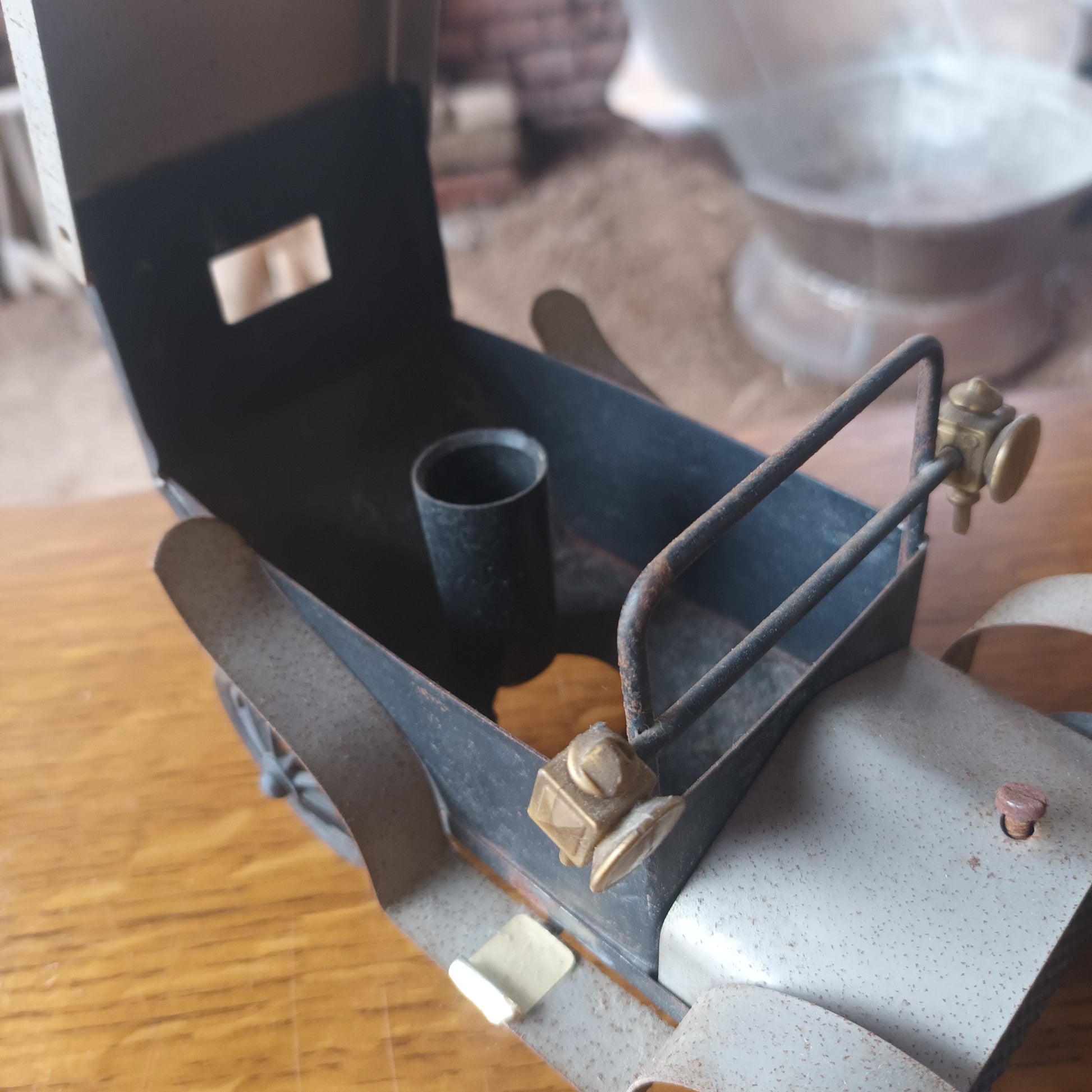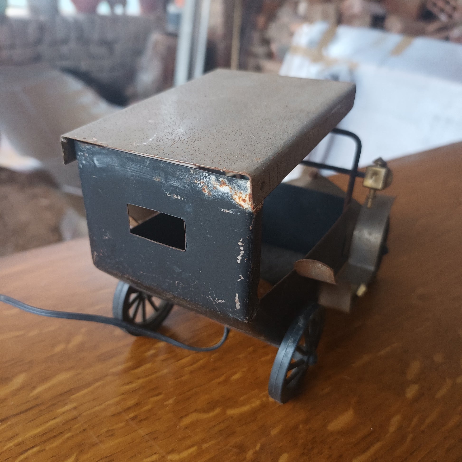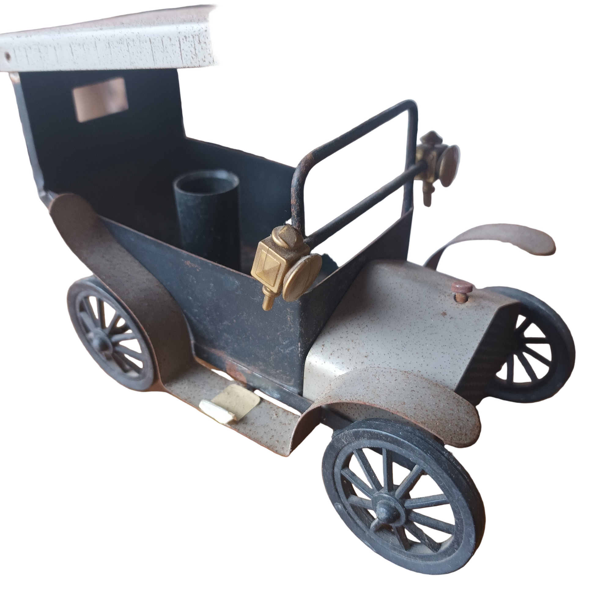 Lampada auto d'epoca anni 40 di piccole dimensioni materiale lamiera e plastica fabbricazione artigianale.