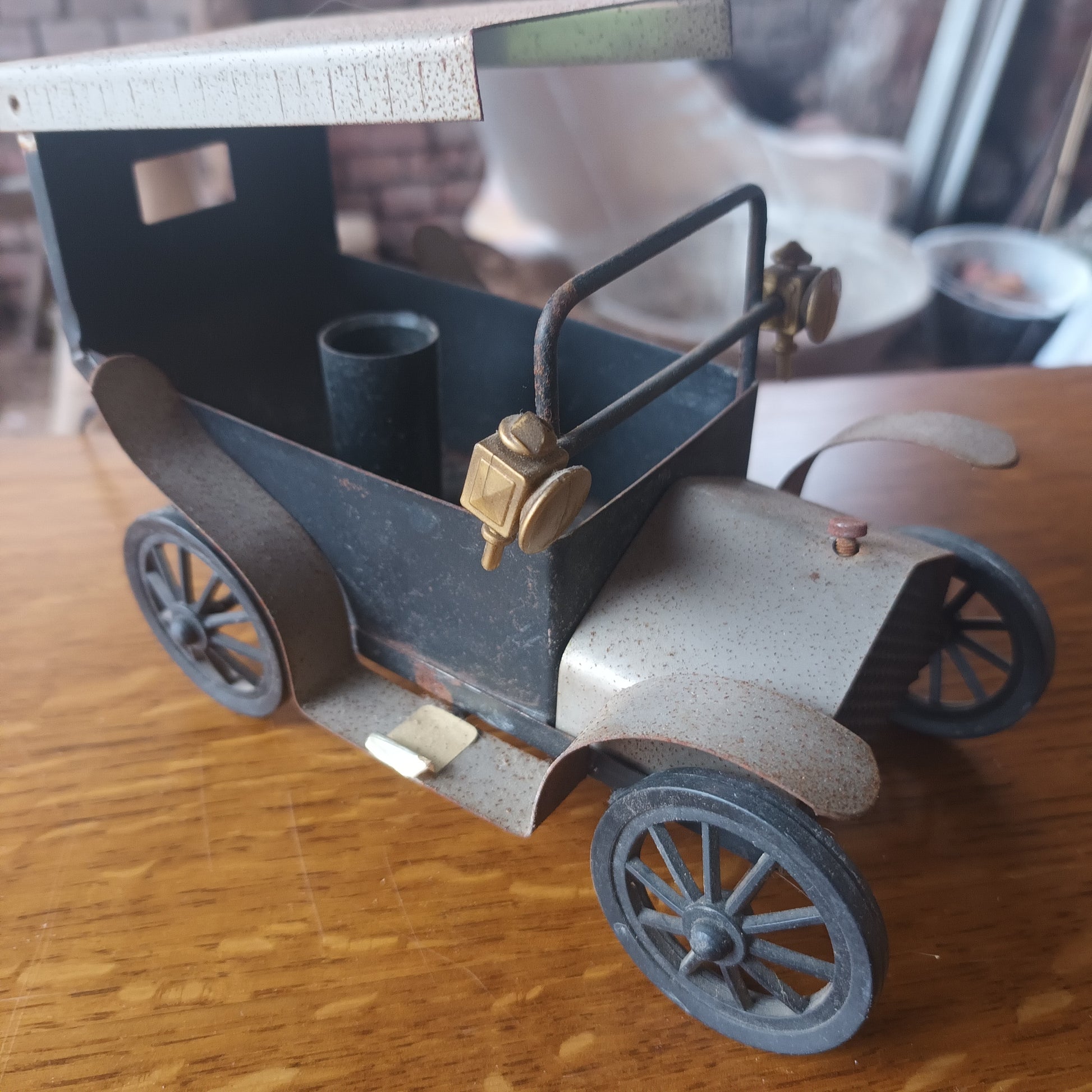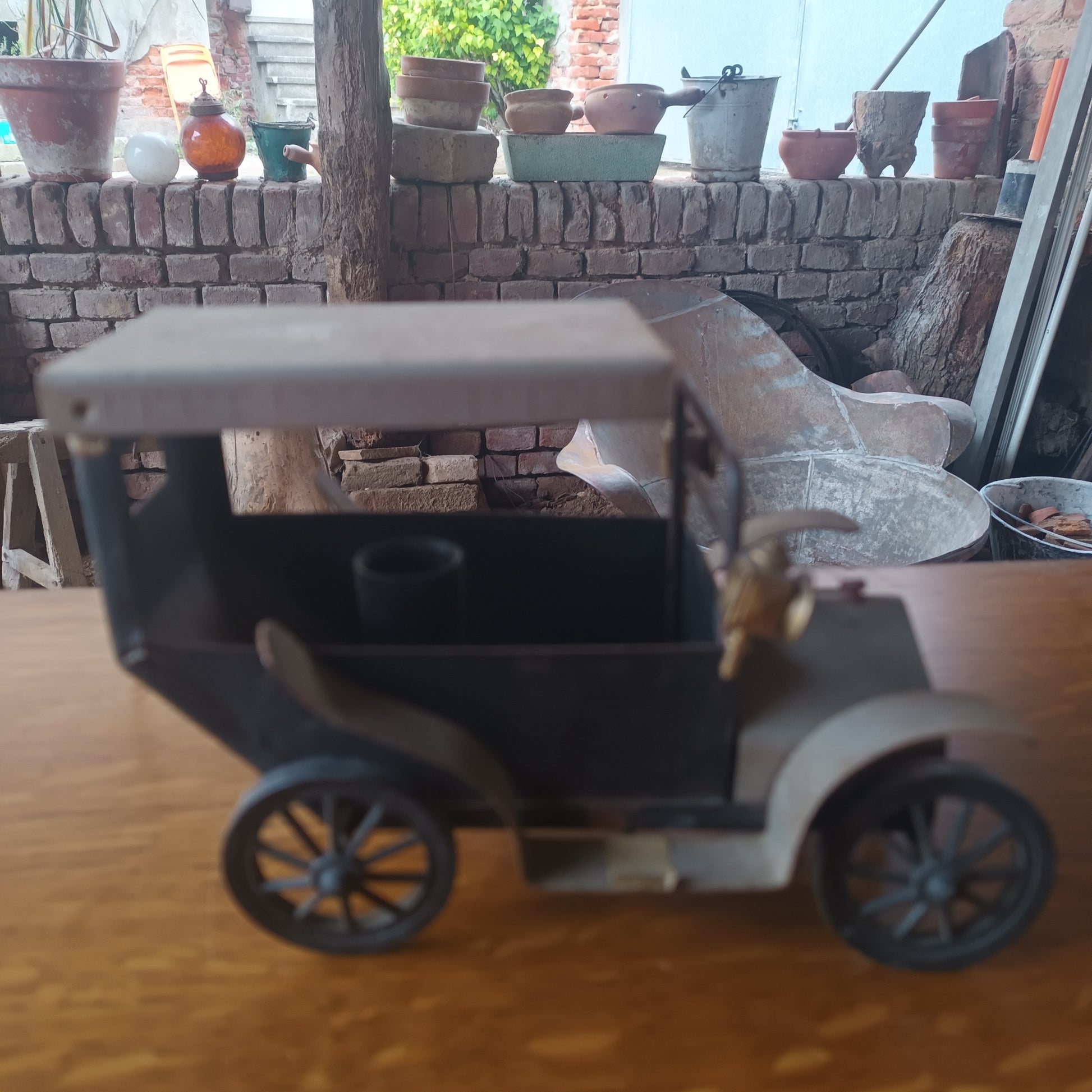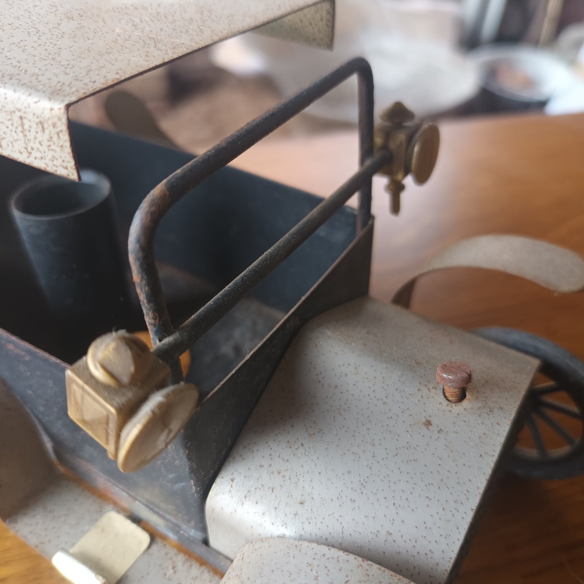 Lampada auto d'epoca anni 40 di piccole dimensioni materiale lamiera e plastica fabbricazione artigianale.